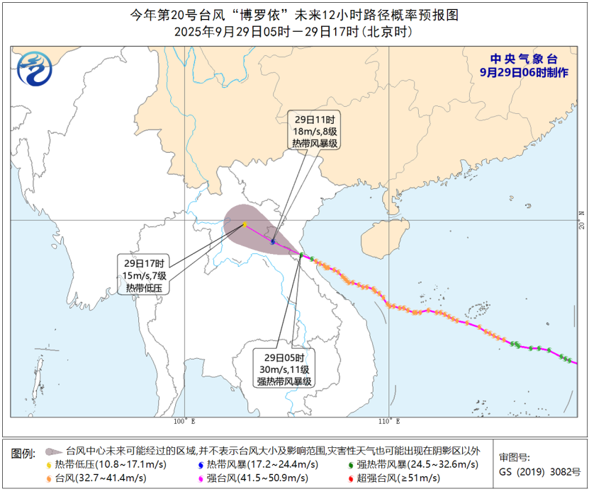 中央气象天文台于9月29日6:00发布了蓝色风暴警告:今年第20届风暴中心“ Boroi”于29日1:30到达越南Ha Tsuen省的海岸。中间附近的最大风强度为11级(30米/秒),最小中心压力为980 HPA。凌晨5点,“ Boroi”中心位于越南的Ha-Jing省,北纬18.4度,东经度105.7度。中心附近的最大风强度为11级(30米/秒),最小压力中心为980 HPA,第七空气环水平的半径为220-250公里,第十架空气环的半径为60-80公里。预计“ Boroi”将以每小时25-30公里的速度移动西北,其强度将迅速减弱。大风预测:从8:00 at 30日下午29点至8点,在南中国海西部的6-8级的强风将是9-10级的阵风,Xisha群岛,Beibu Gulf,Qiongzhou海峡,东部和西广西,海南岛和沿海地区以及沿海地区。其中,贝布海湾东南海的风力发电将为9-10,阵风为11-12。降水的预测:从8:00到29至8:00至30日,海南岛南部,广西西部,南云南,朱济州南部等等。中央气象天文台向中央气象学发出了蓝色的警告,该警告在9月29日的6:00左右降雨,预计是9月29日至9月29日至9月8日至8日,均为8:00 the Lay the Walt Sichuan,北重庆,南 - 萨罕西,西北部,海南岛南部,海南岛,广西西部,南部云南和南部山脉,其中一些地区将在广西南部和南部 - 尤恩南的某些地区进行大雨。以上一些区域伴随着短期大雨(每小时最大降雨为30-50毫米,本地超过60毫米),而本地的Stron对流天气,例如风暴和强风。
